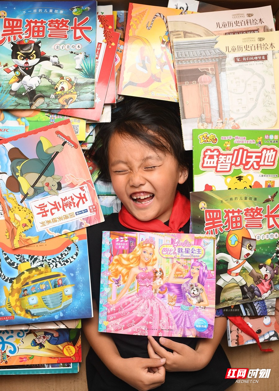 热心市民与网友及各单位捐赠的图书、学习用品和防疫物资将捐赠点堆得满满当当。