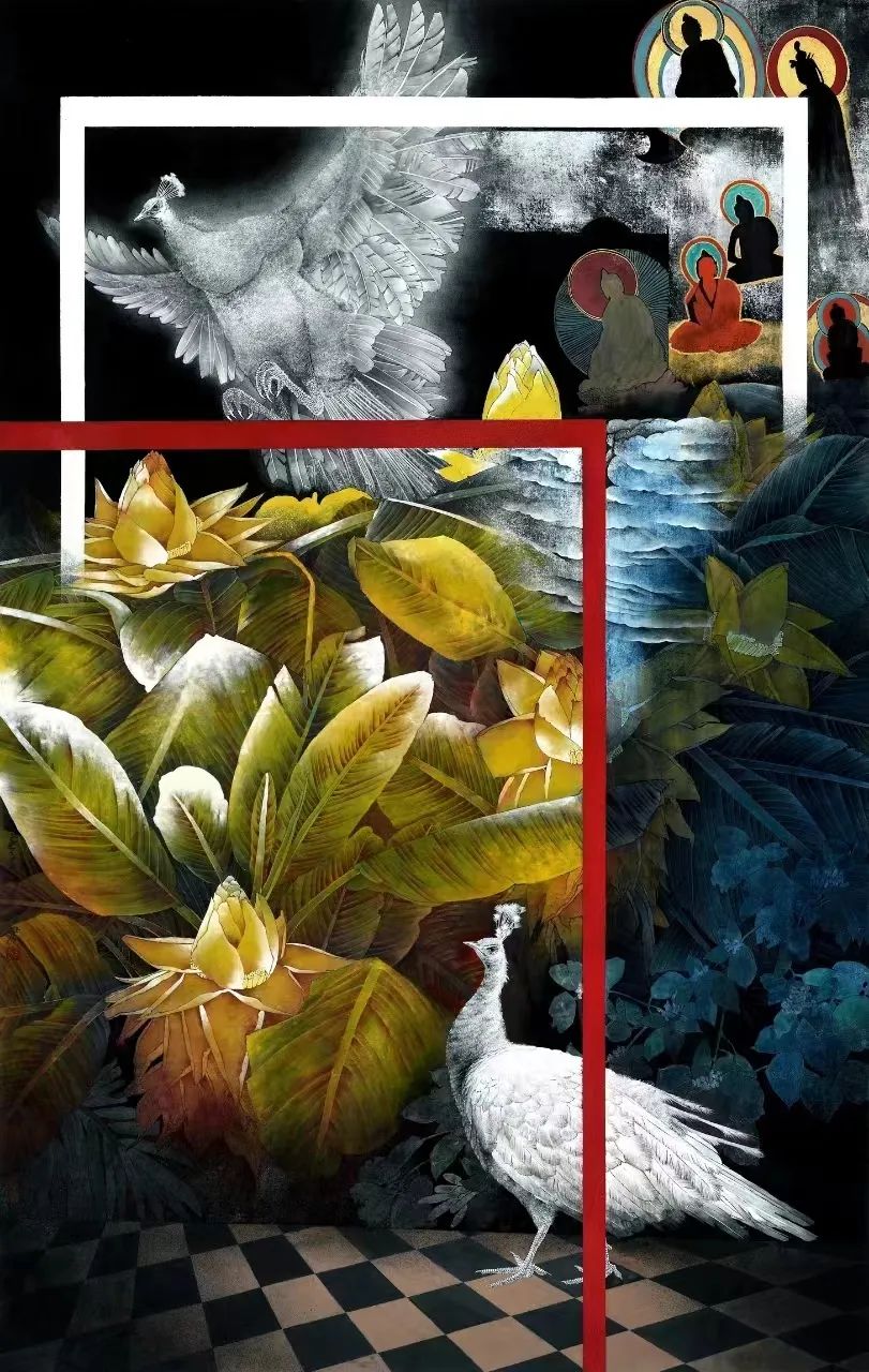 我相信,文字都是渗透灵魂最好的遇见,遇见一幅让你久久不能释怀的画作,一种带有“声、色”的倾诉因此扑面而来。当你习惯了一份孤独而真实的告白,你的作品或许才会获得无数的共鸣与感动,才会在画家“爱”的世界里,慢慢滋养出你对这个世界的眷念,对这片神奇大自然的热爱。也或许,会有一个人,正在一个遥远的地方聆听你吟出的佛音,那佛音走得很慢,很慢,你需要在另一个时空里,穿越高高围墙,然后用一生的时光去等待。