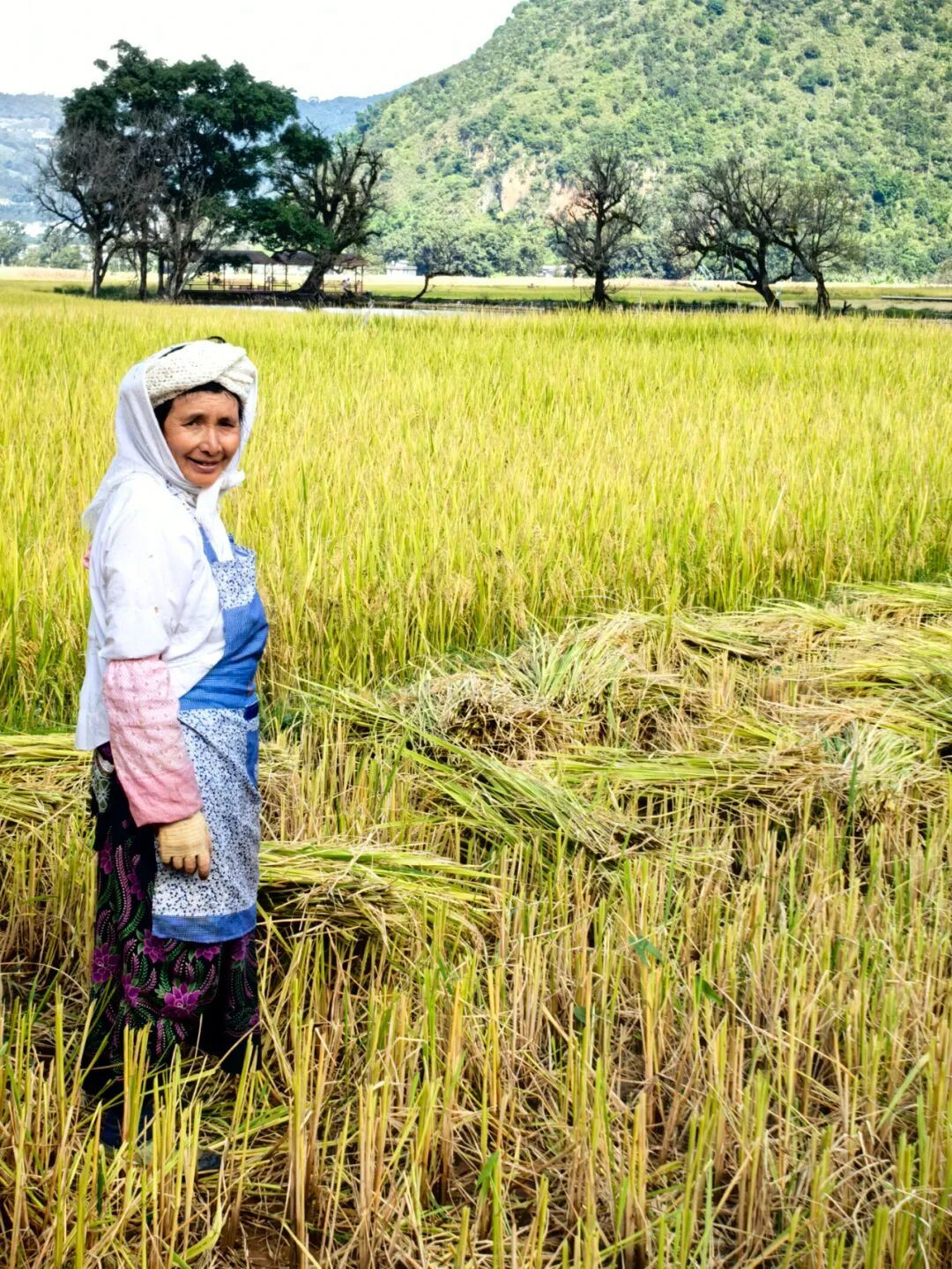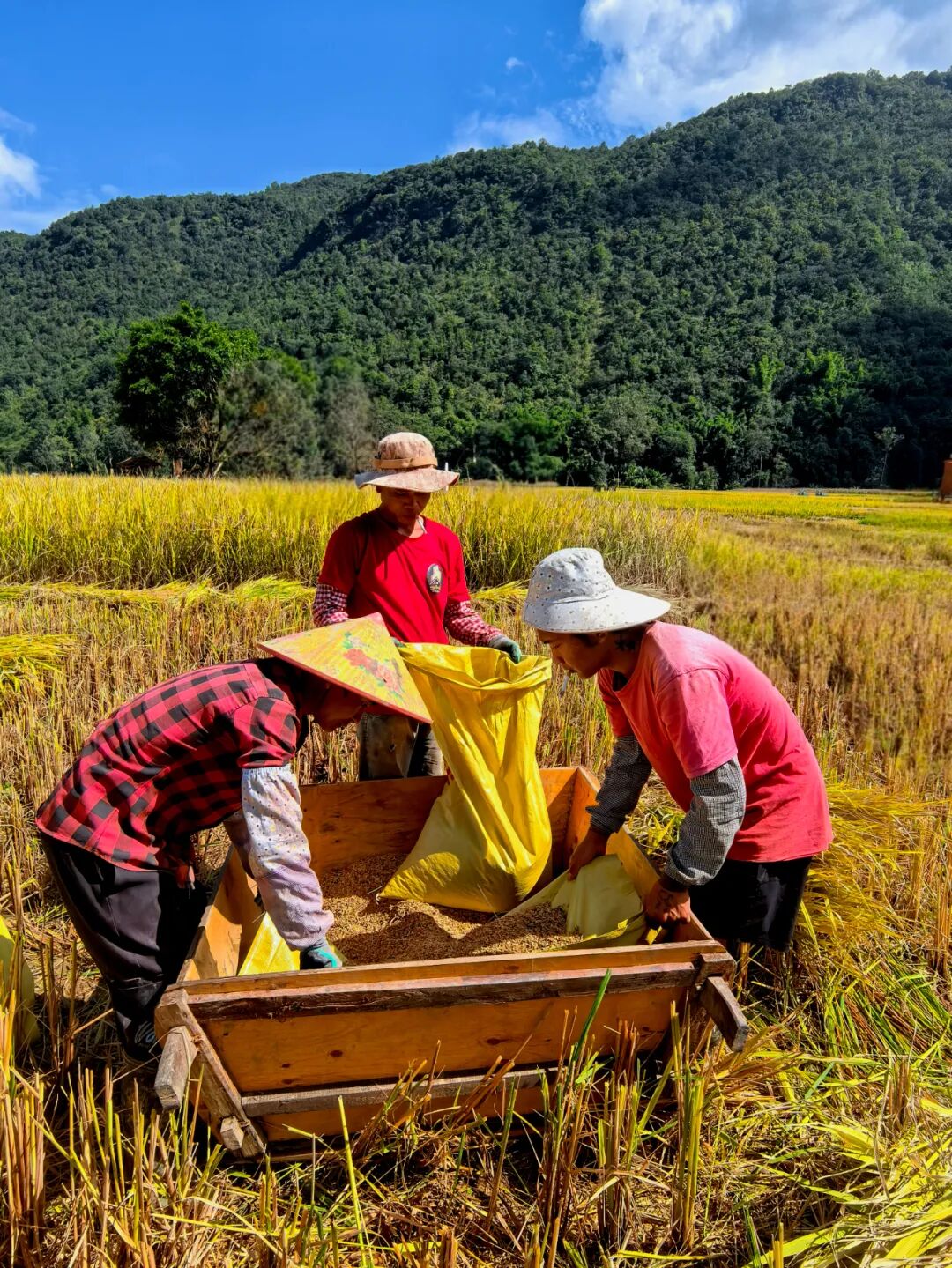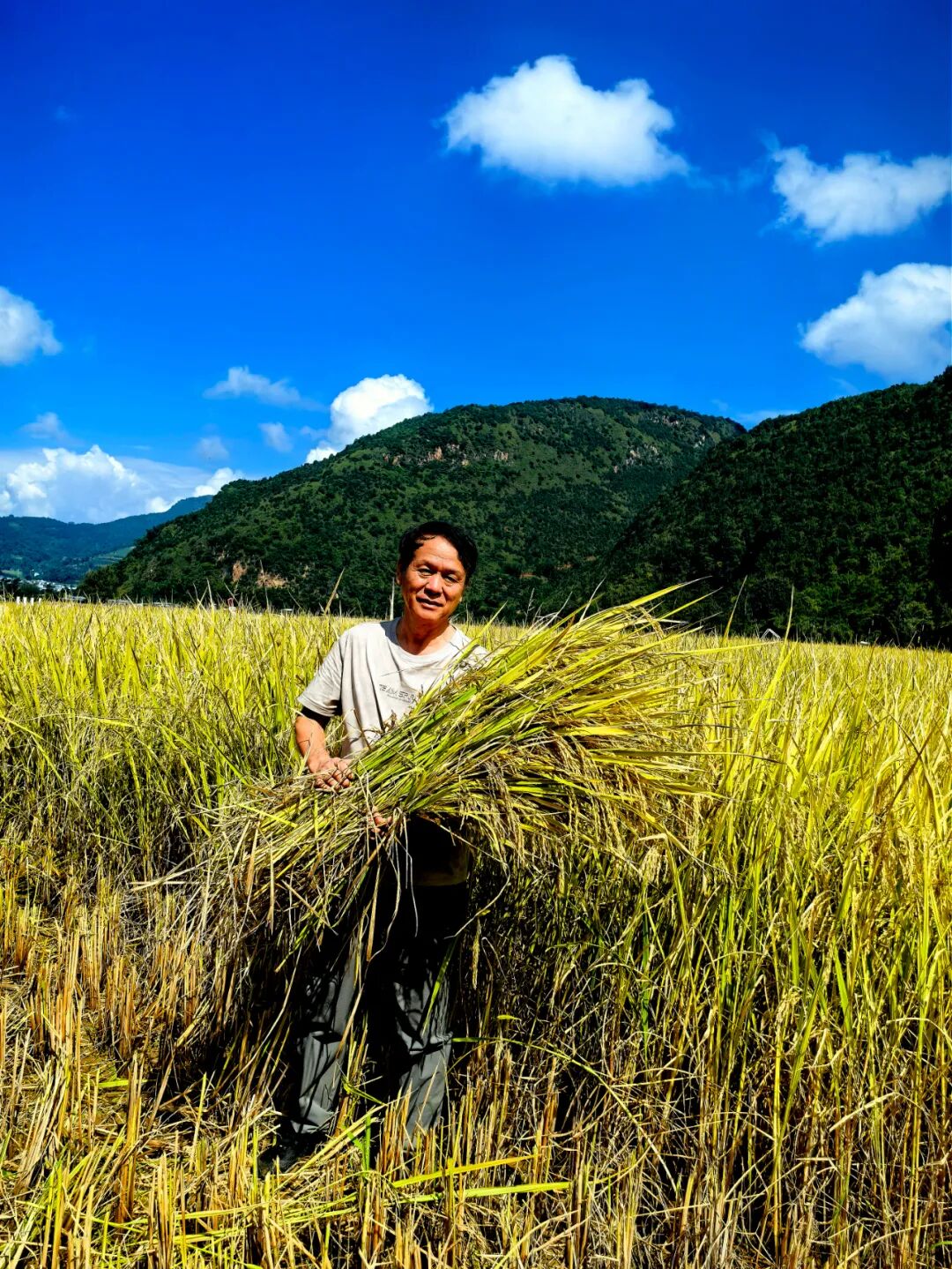 见惯了青海高地的青稞地,这是我第一次体验收割稻谷的劳作,炎阳之下,挥动弯镰收割稻田,土地的清香迎面扑来,让人沉醉其间。这里的村民还保留着传统的耕作方式,将收割的谷子在宽大的木仓里一阵猛甩,当沉甸甸的谷穗撞到木板的时候,饱满的谷粒就纷纷落到仓里。这哪里是普普通通的谷粒呀?这是村民们在春天里洒落的汗珠齐聚在一起,为我们演绎土地为它的子民们慷慨的馈赠。