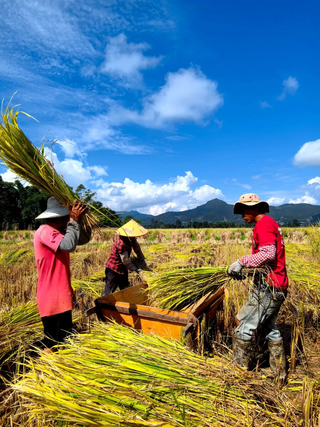 又是一个阳光灿烂的日子,天空尽洗,田野葱笼。在耿马县委宣传部副部长杨绍宇和县作家协会副主席张子华的陪同下,一路欢歌笑语,来到耿马县勐撒镇箐门口村芒见自然村,深入田间地头,参加秋收劳动。